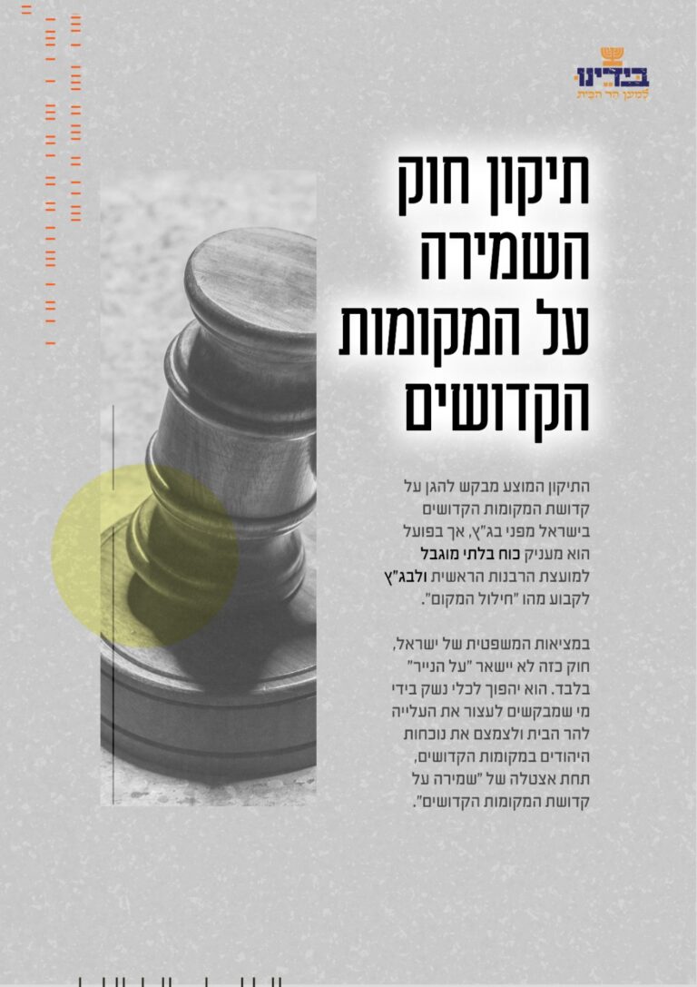 תיקון חוק השמירה על המקומות הקדושים התיקון המוצע מבקש להגן על קדושת המקומות הקדושים בישראל מפני בג"ץ, אך בפועל הוא מעניק כוח בלתי מוגבל למועצת
