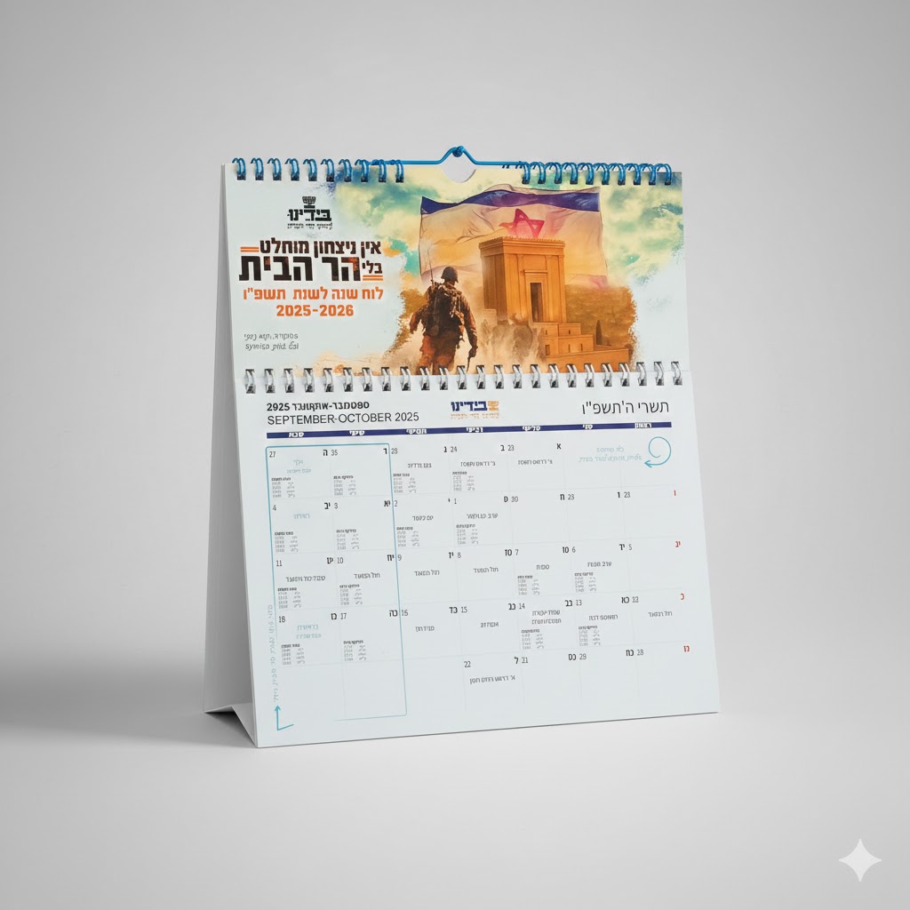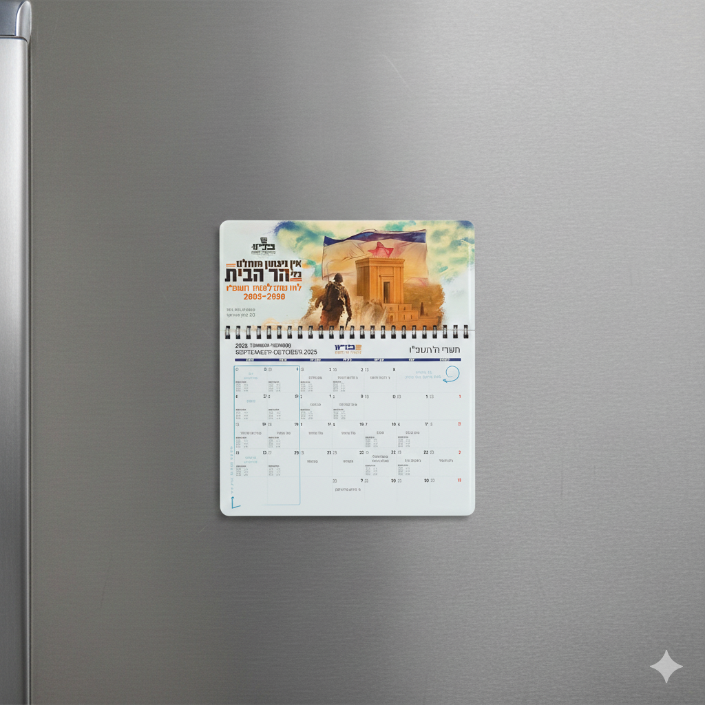 לוח השנה הרשמי של תנועת בידינו – למען הר הבית, במהדורה שנתית מהודרת. לוח השנה מצויד עם מגנט לתלייה על דלת, מקרר או כל משטח מתכתי.