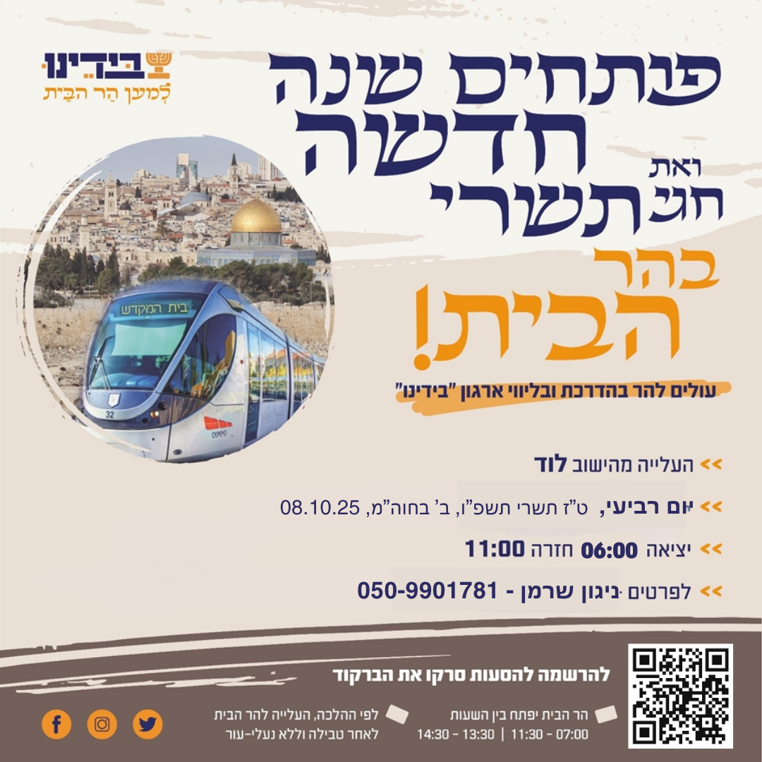 ההסעה תצא ביום רביעי, ט"ז תשרי, א' חוה"מ סוכות 8.10.25